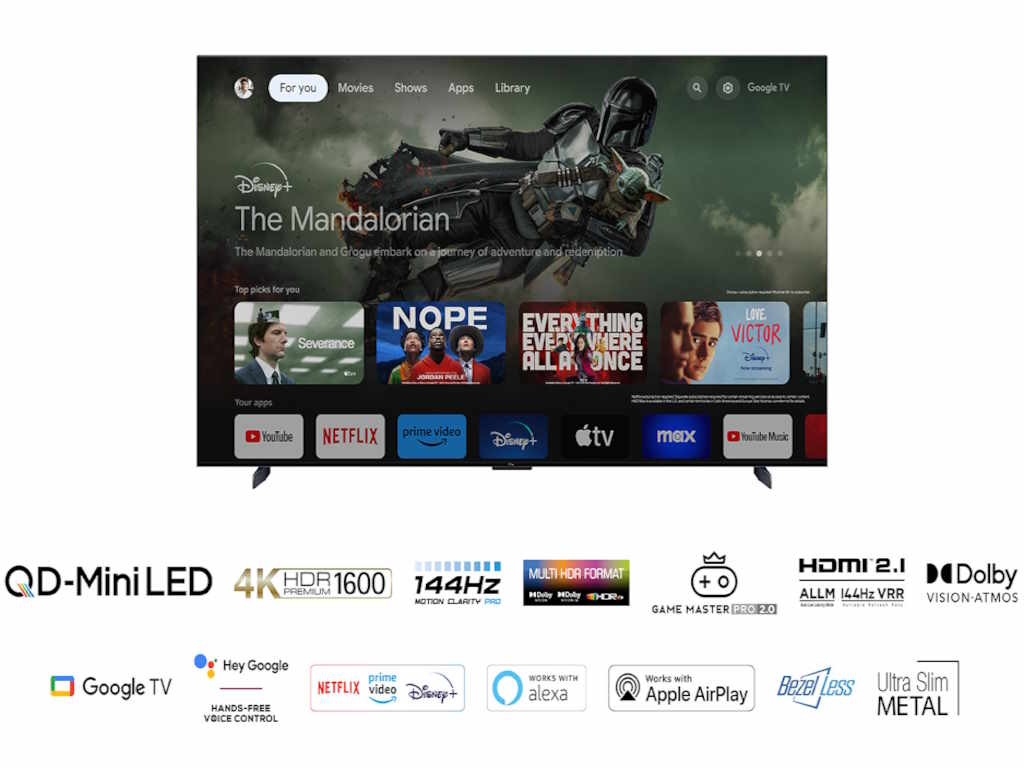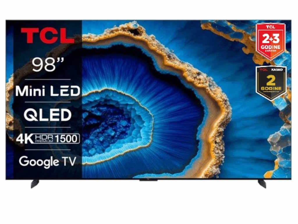 Televizor TCL 98C805/Mini LED-QLED/98″/4K HDR/144Hz/Google TV/crna